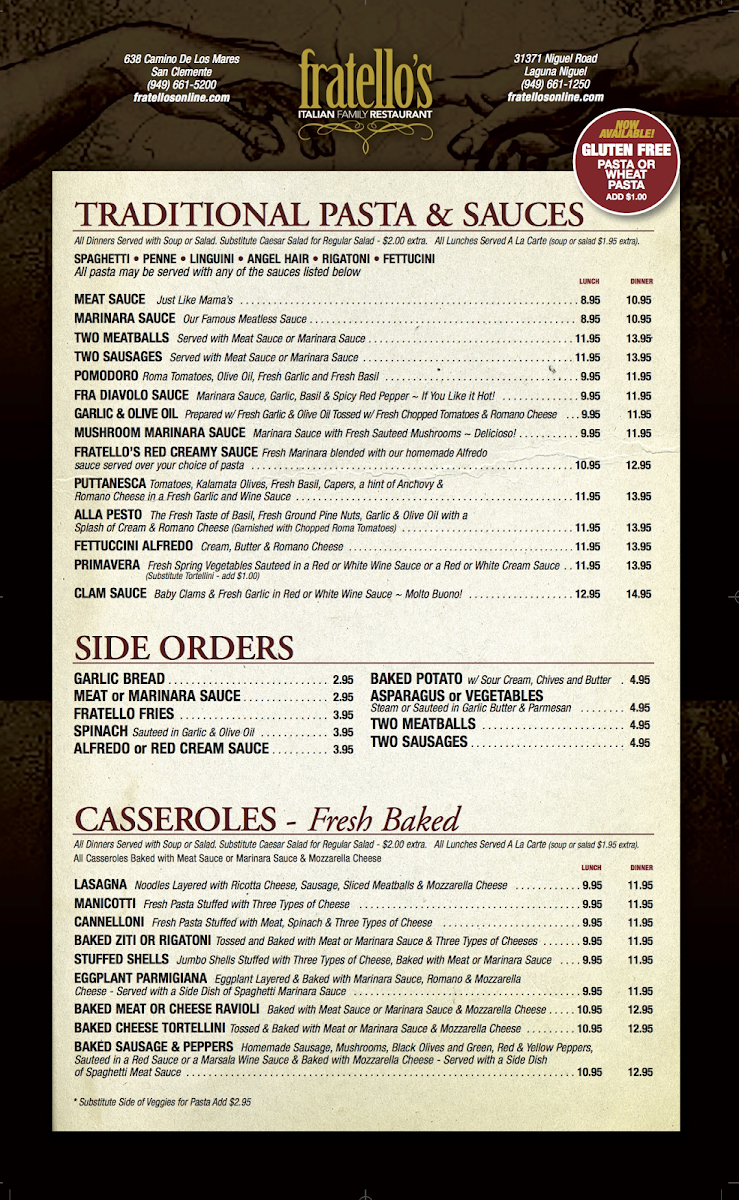 Come experience the charm and authentic flavors of Fratello's Italian Kitchen Bar, where every meal feels like a delightful journey to Italy right in the heart of San Clemente.